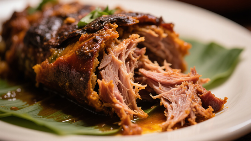 En la península de Yucatán, la herencia maya se refleja en el uso del achiote, una especia que da color y sabor a platillos como la cochinita pibil, carne de cerdo marinada y cocida lentamente bajo tierra.