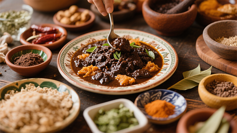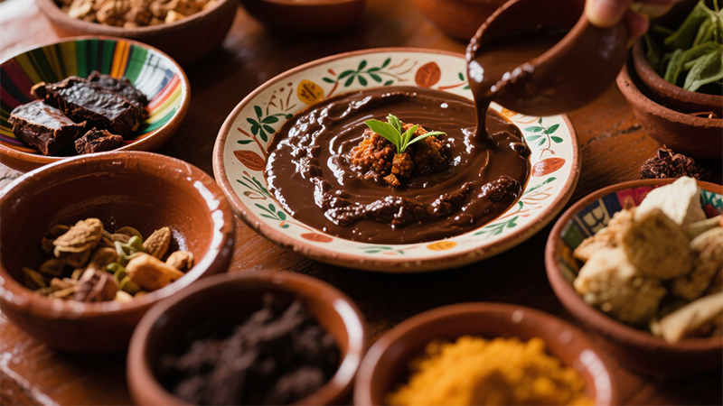 Uno de los platillos más complejos de la cocina mexicana. Combina chiles secos, especias, frutos secos y chocolate para crear una salsa espesa y llena de matices. El mole poblano es el más famoso, pero existen muchas variantes regionales.